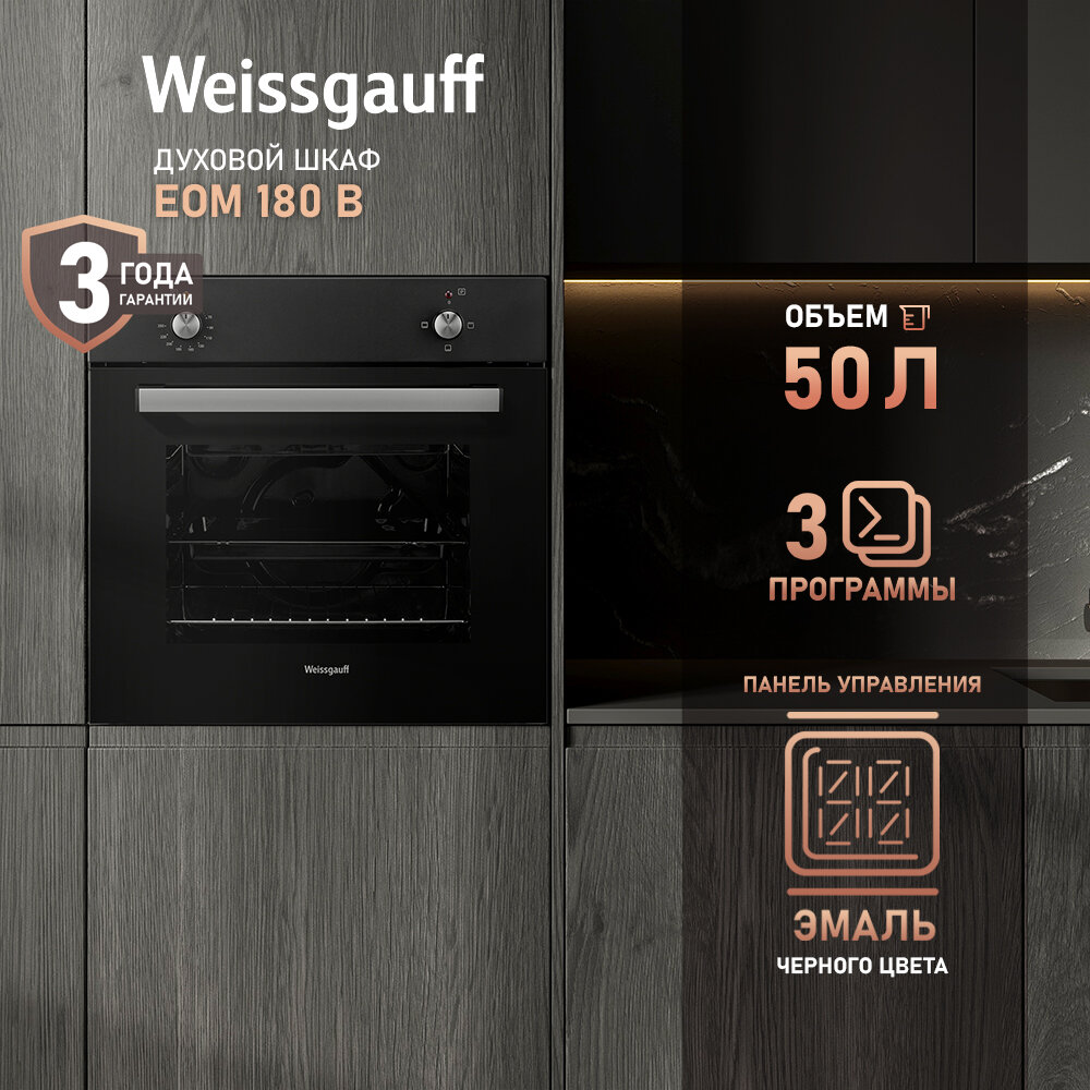 Электрический духовой шкаф Weissgauff EOM 180 B, гарантия 3 года