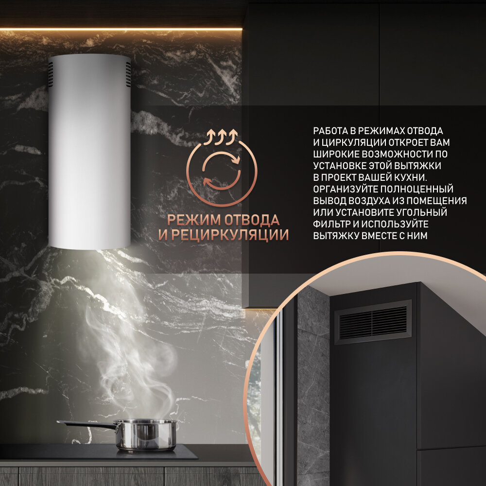 Вытяжка цилиндрическая пристенная Weissgauff Tubus 700 PB WH 3 года гарантии, Алюминиевый жировой фильтр, Низкий уровень шума информация: