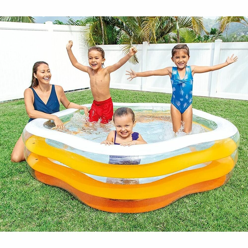 Детский надувной бассейн Звезда, надувное дно, 185х180х53 см,от 3 лет, intex 56495