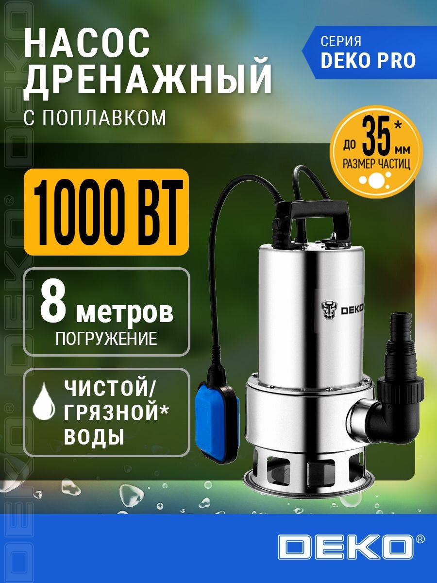 Насос дренажный DEKO DWP-1000P (грязевая, поплавок, 220В, 1000Вт, нержавеющая сталь) информация:
