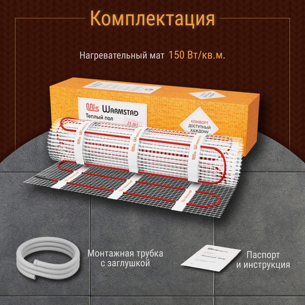 Теплый пол электрический под плитку Warmstad WSM 175 Вт/1.20 кв.м информация: