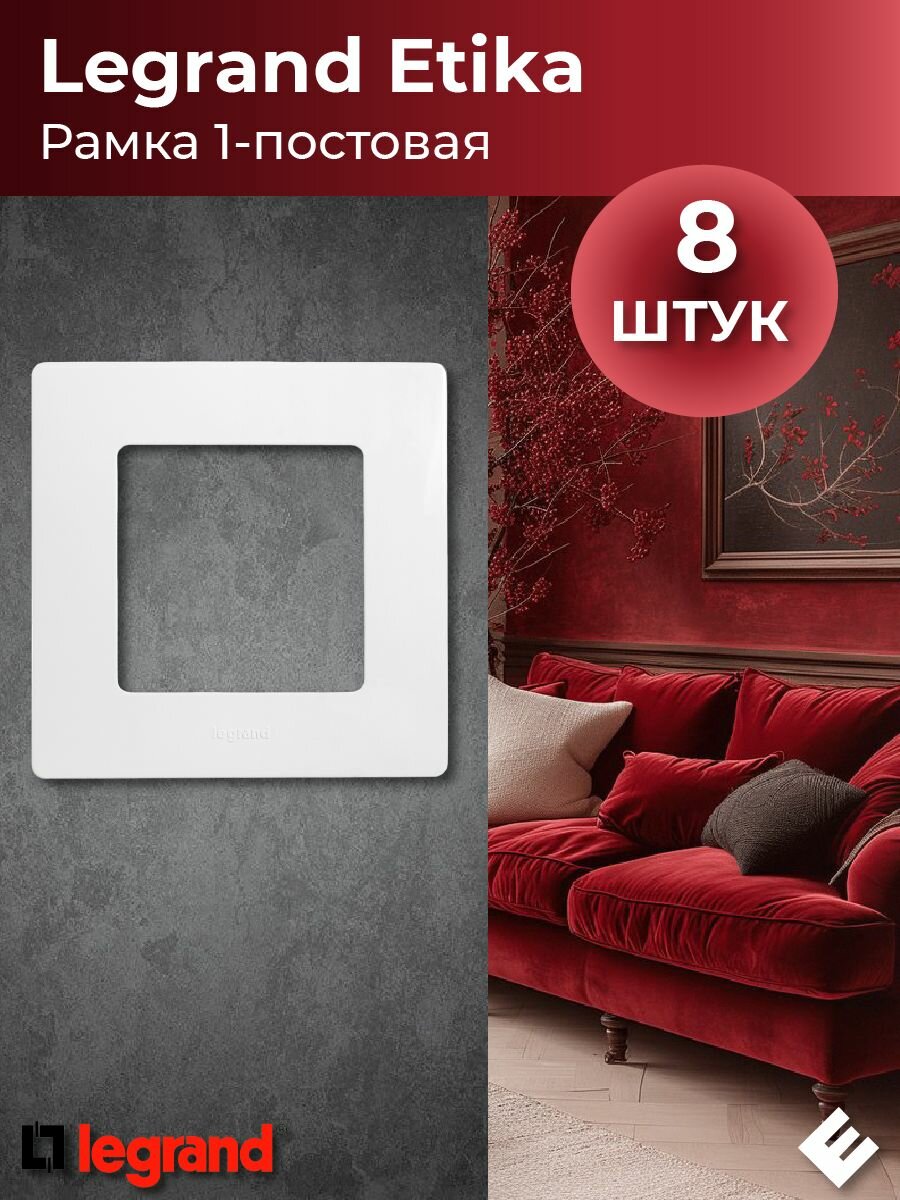 Рамка однопостовая белая, Legrand Etika (комплект 8шт) информация: