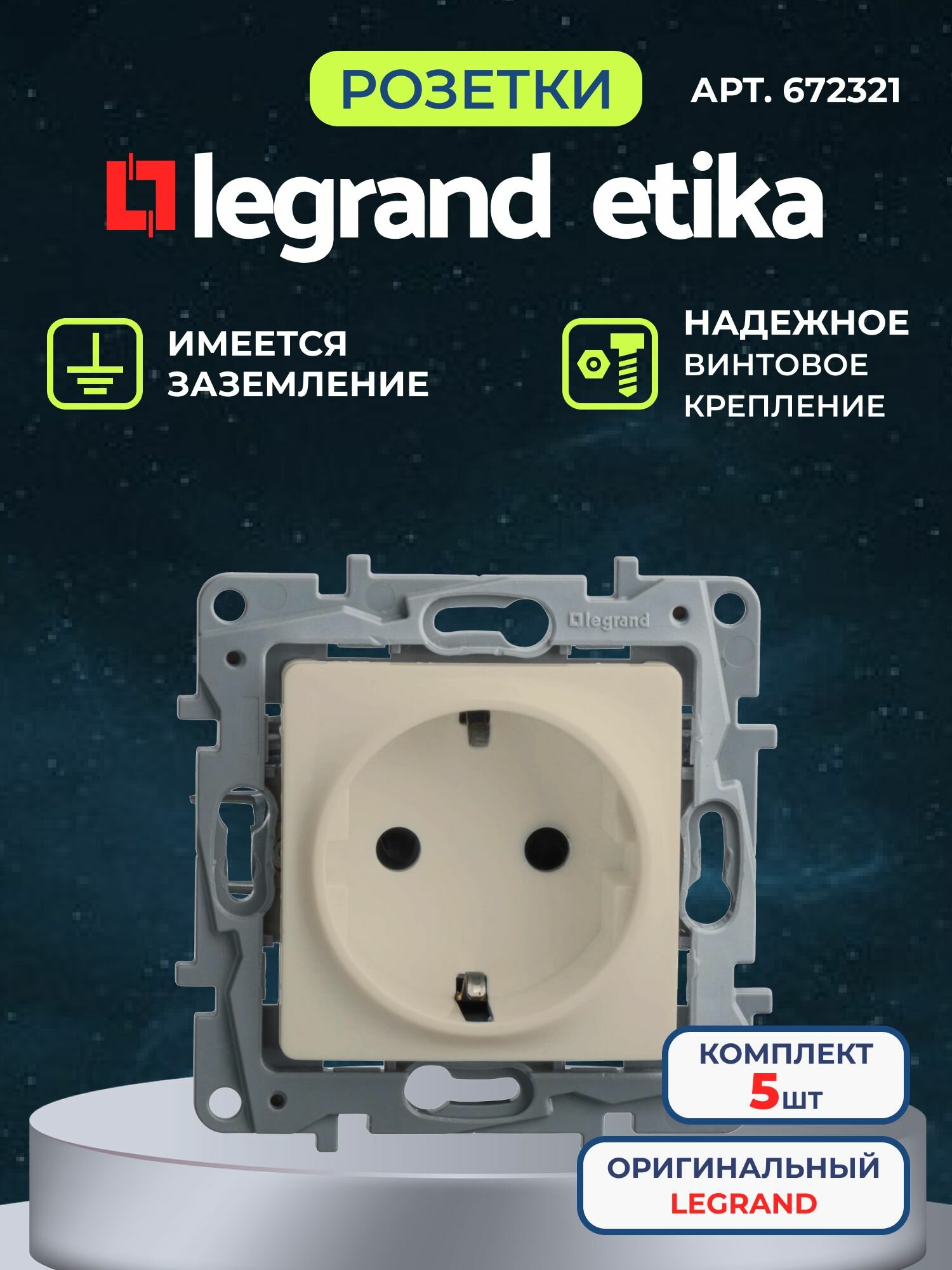 10 цен на Розетка ETIKA, скрытый монтаж, с заземлением, слоновая кость | код. 672321 | Legrand (5шт.в упак.)