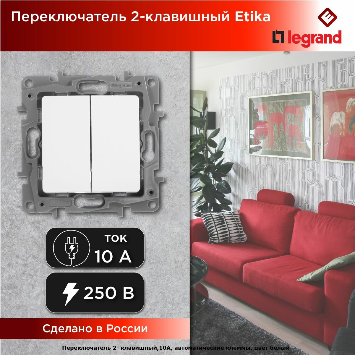 Legrand 672212 Переключатель 2-х клавишный 10А ETIKA -Белый 348 ₽