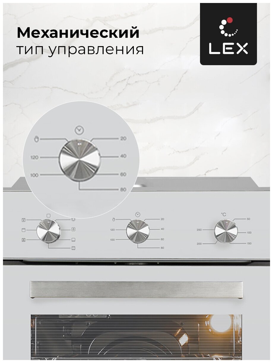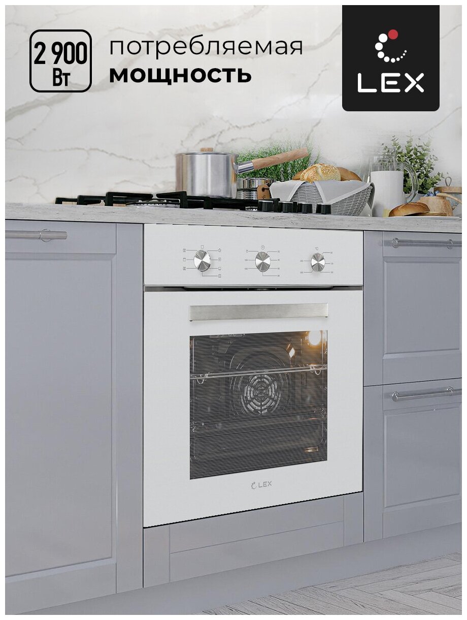 10 цен на Встраиваемый электрический духовой шкаф LEX EDM 073 WH, 60 л, 7 режимов работы, таймер, гриль и конвекция, белый