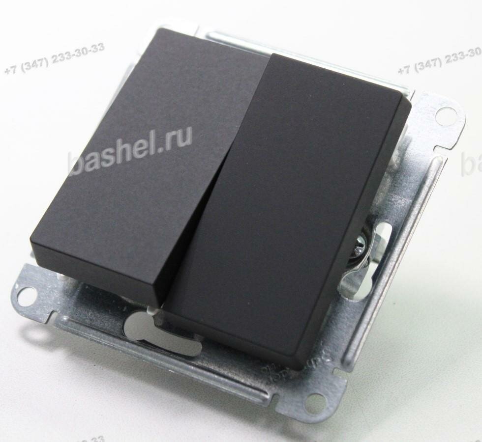 Переключатель двухклавишный карбон сх.6, 10АХ, механизм Schneider Electric AtlasDesign (комплект 9шт)