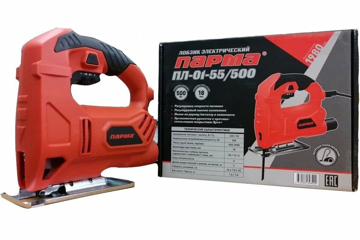 Лобзик электрический Парма ПЛ-01-55/500, 500 Вт, 500-2900 ход/мин, арт. 02.031.00001