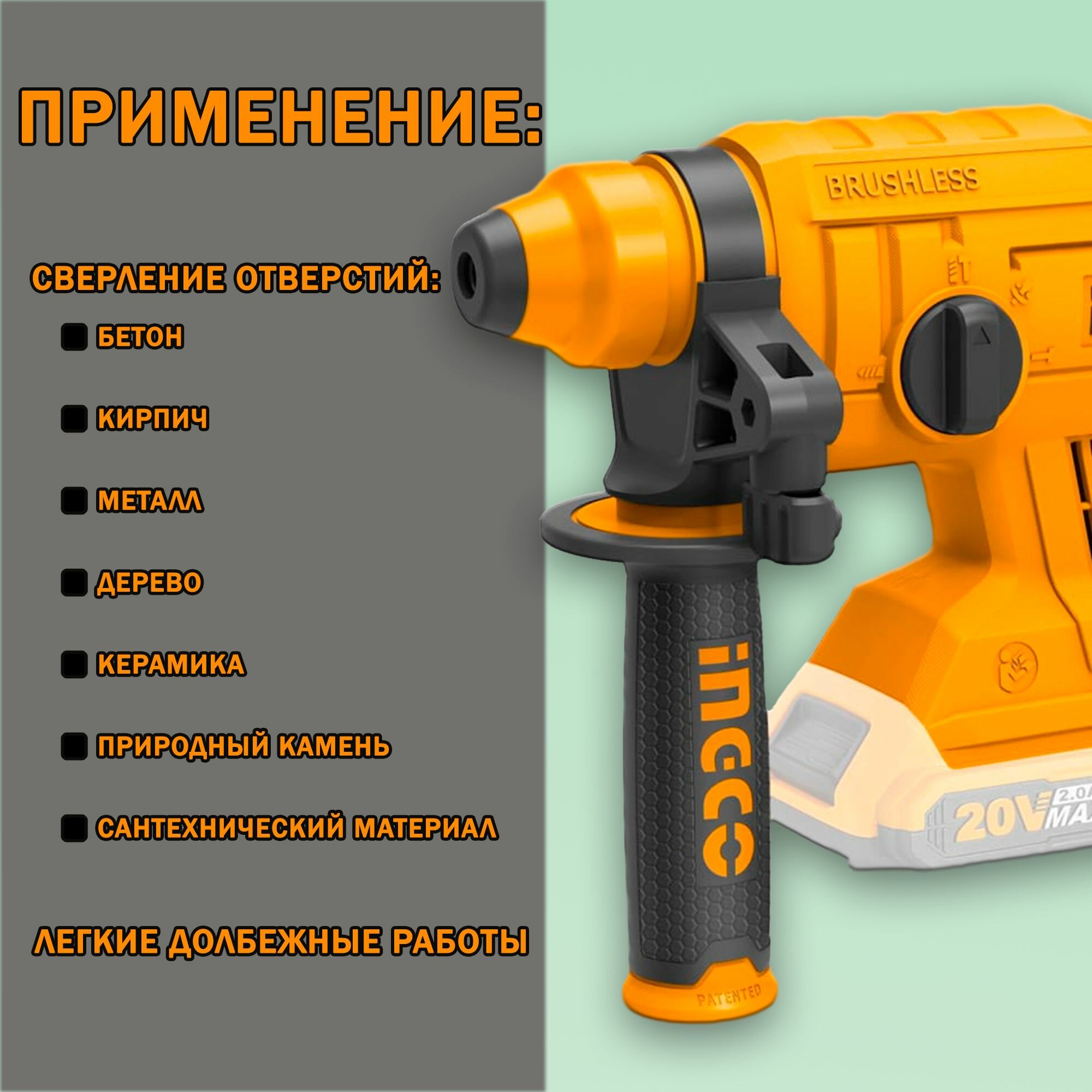 Отзывы на Аккумуляторный перфоратор BL 20В, 2Дж без АКБ и ЗУ INGCO CRHLI2201 INDUSTRIAL