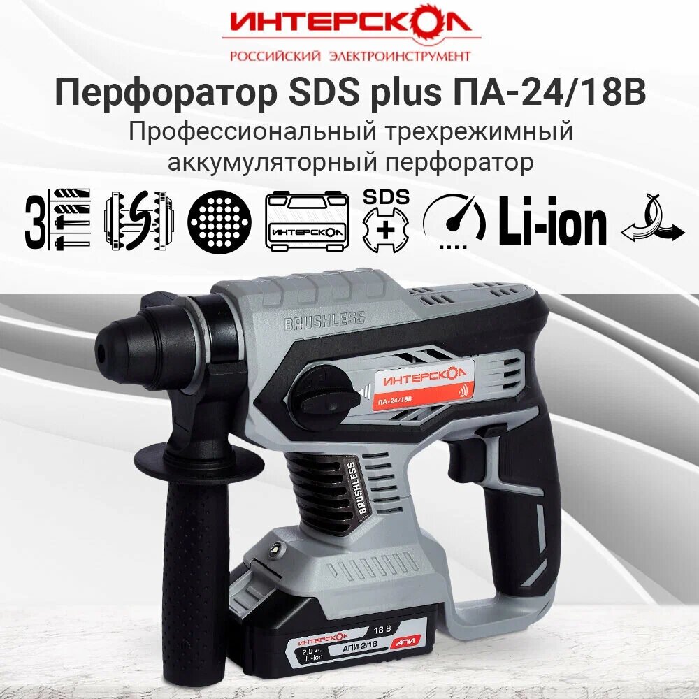 Аккумуляторный бесщеточный перфоратор SDS-Plus ИНТЕРСКОЛ ПА-24/18В (кейс, 1 аккум. 4Ач, ЗУ)