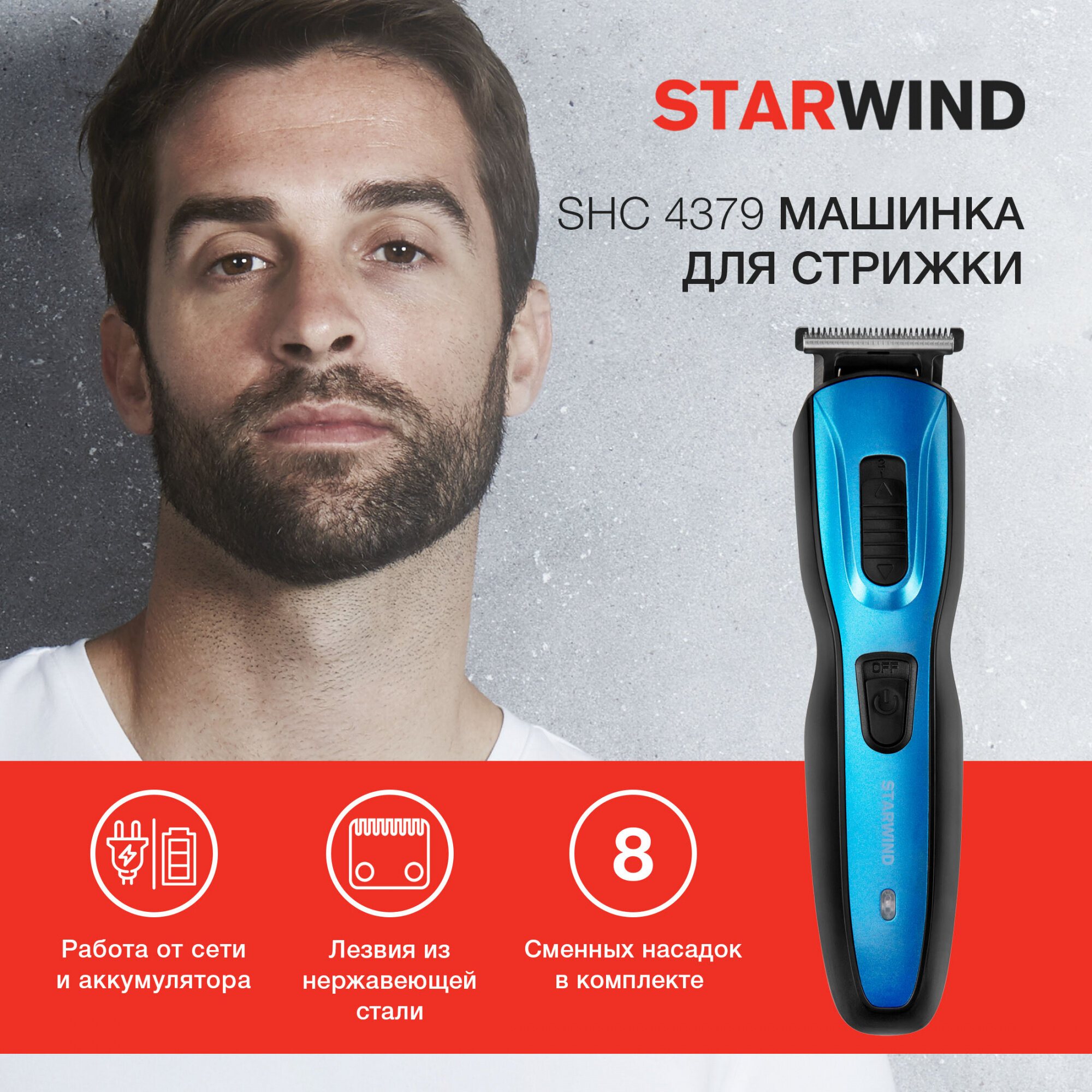 Машинка для стрижки Starwind SHC 4379, синий/черный . информация: