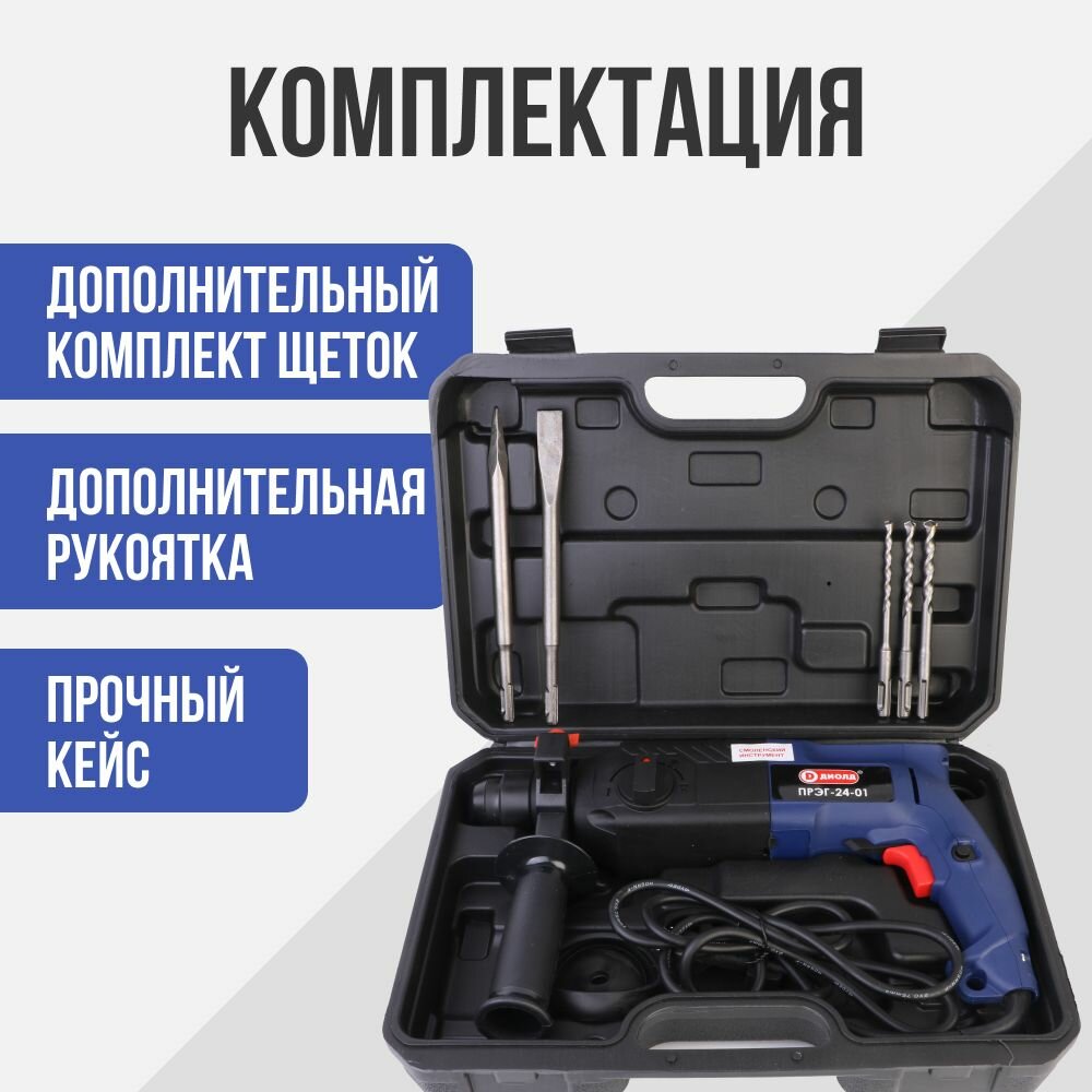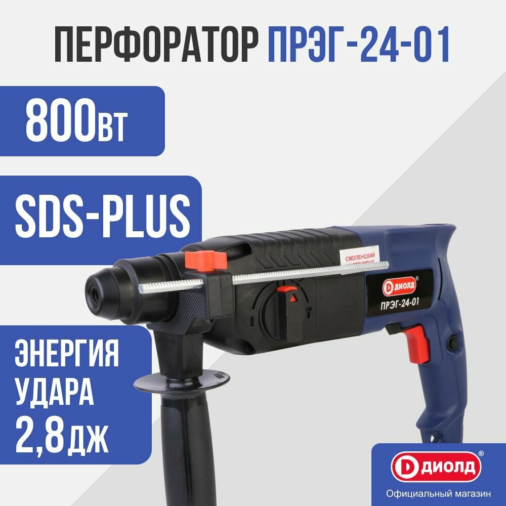 Перфоратор диолд ПРЭГ-24-01 в кейсе / регулировка оборотов, 800 Вт, 0-900об/мин, 4850 уд/мин, 2,8 Дж, 3 режима, SDS+, производитель россия информация: