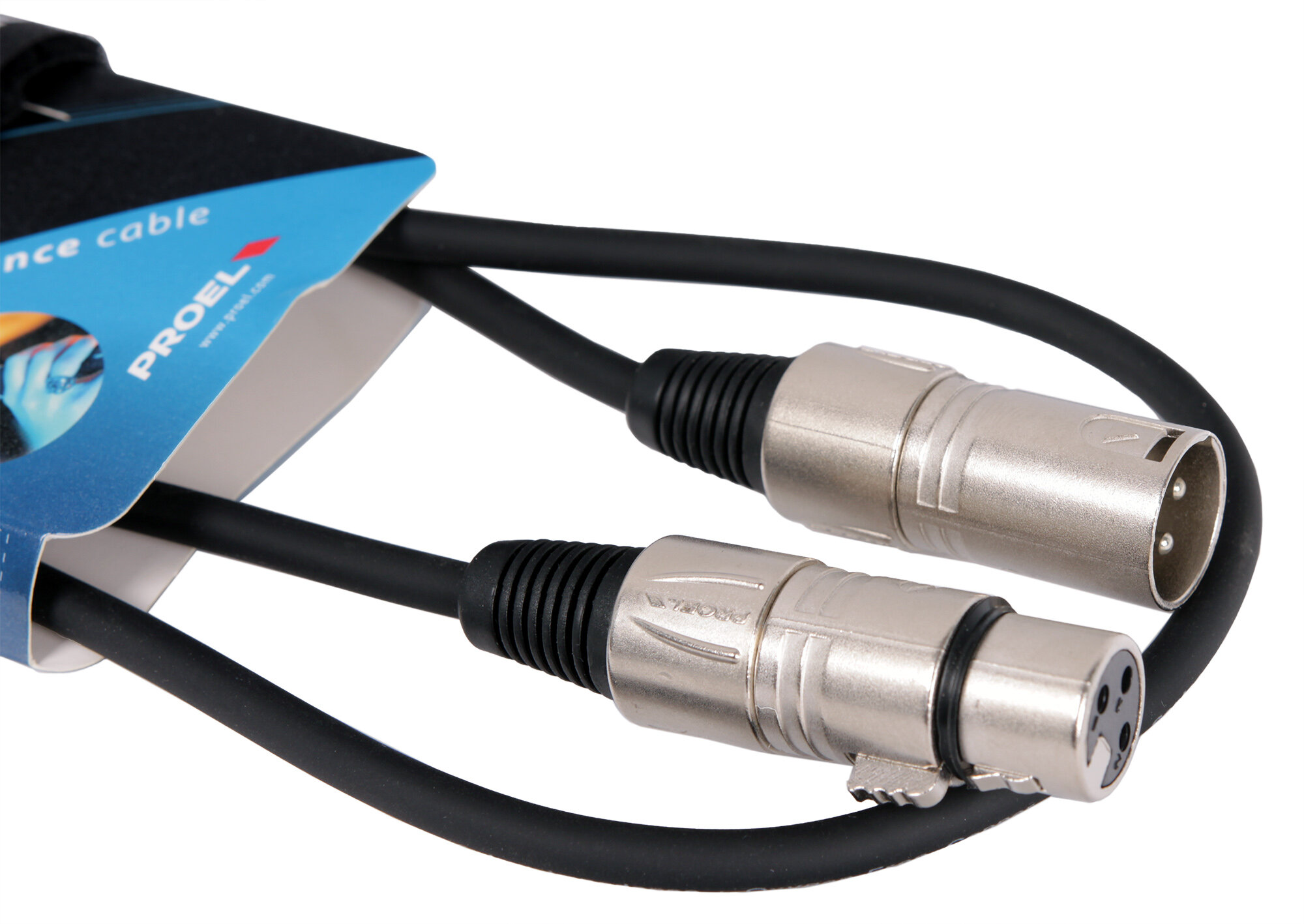 Кабель PROEL 3P XLR (m) - 3P XLR (f), 1 м, 1 шт., черный