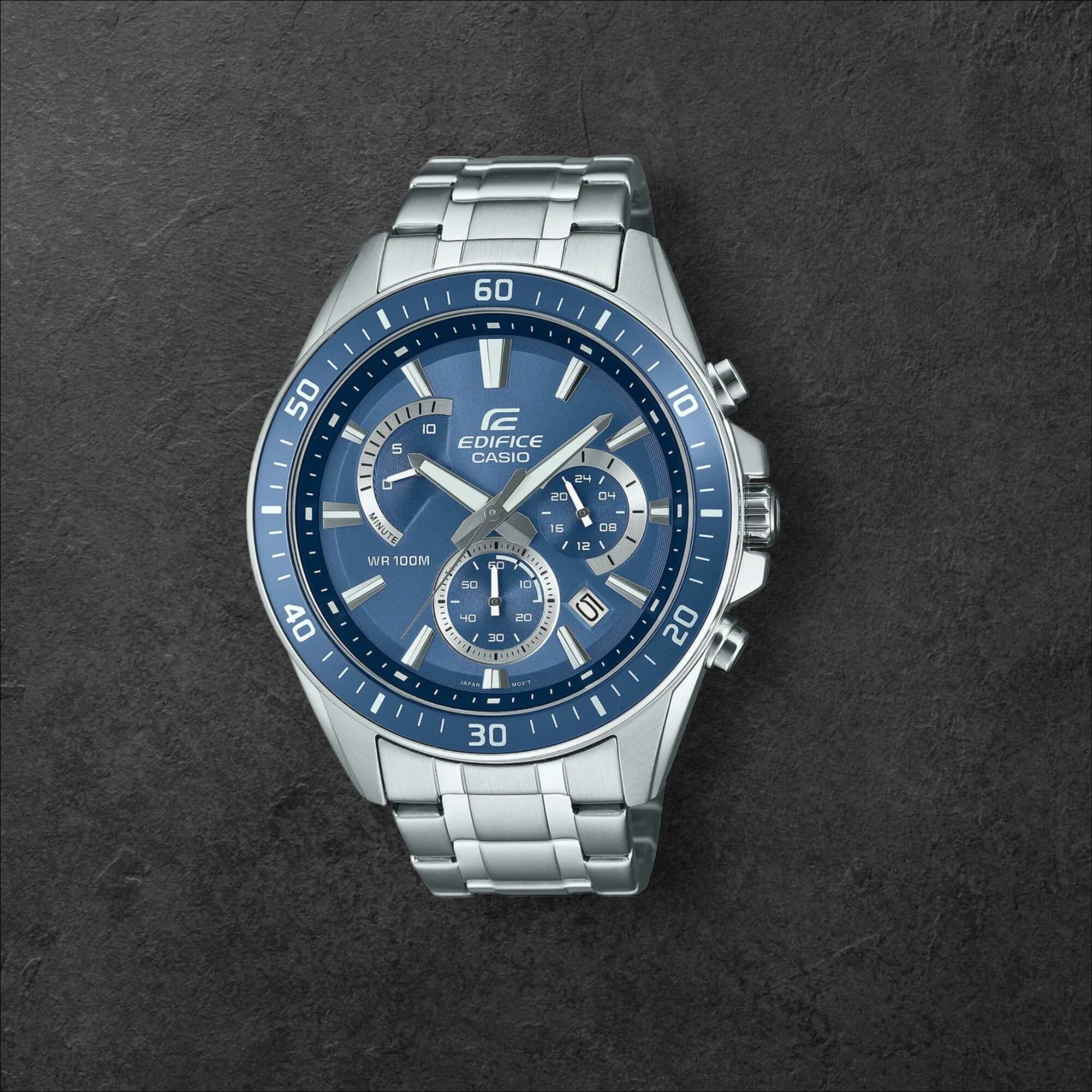 EFR-571DC-2A Casio наручные часы кварцевые WR100 (10 атм) мужские черный, синий отображение числа подсветка стрелок минеральное стекло