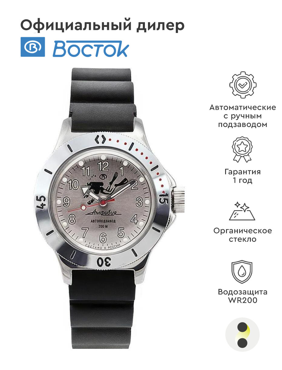 Наручные механические часы с автоподзаводом Восток Амфибия 120658 resin 120 black информация: