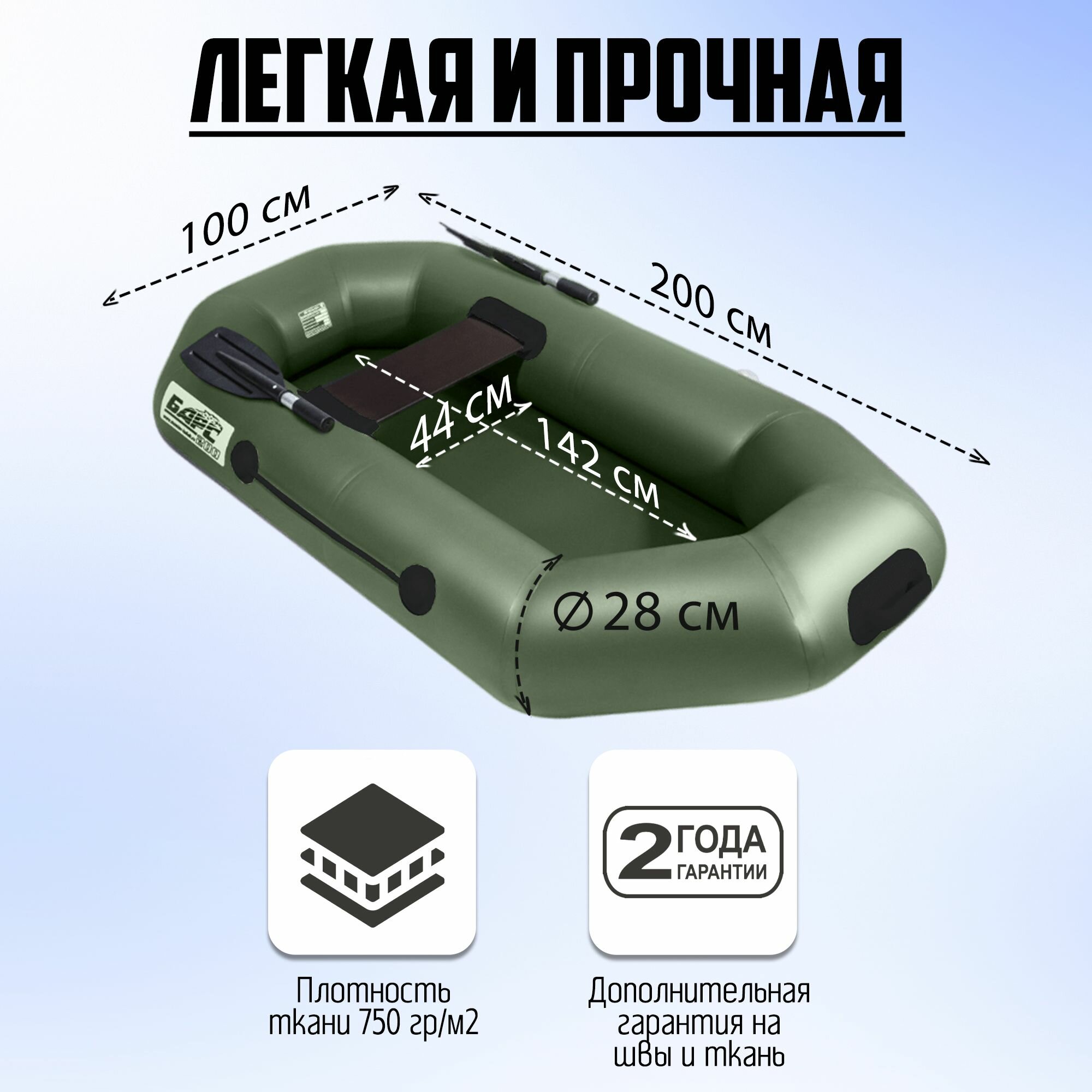 Барс-200 лодка надувная для рыбалки, 2 отсека, до 120 кг, 1-местная, сварные швы информация:
