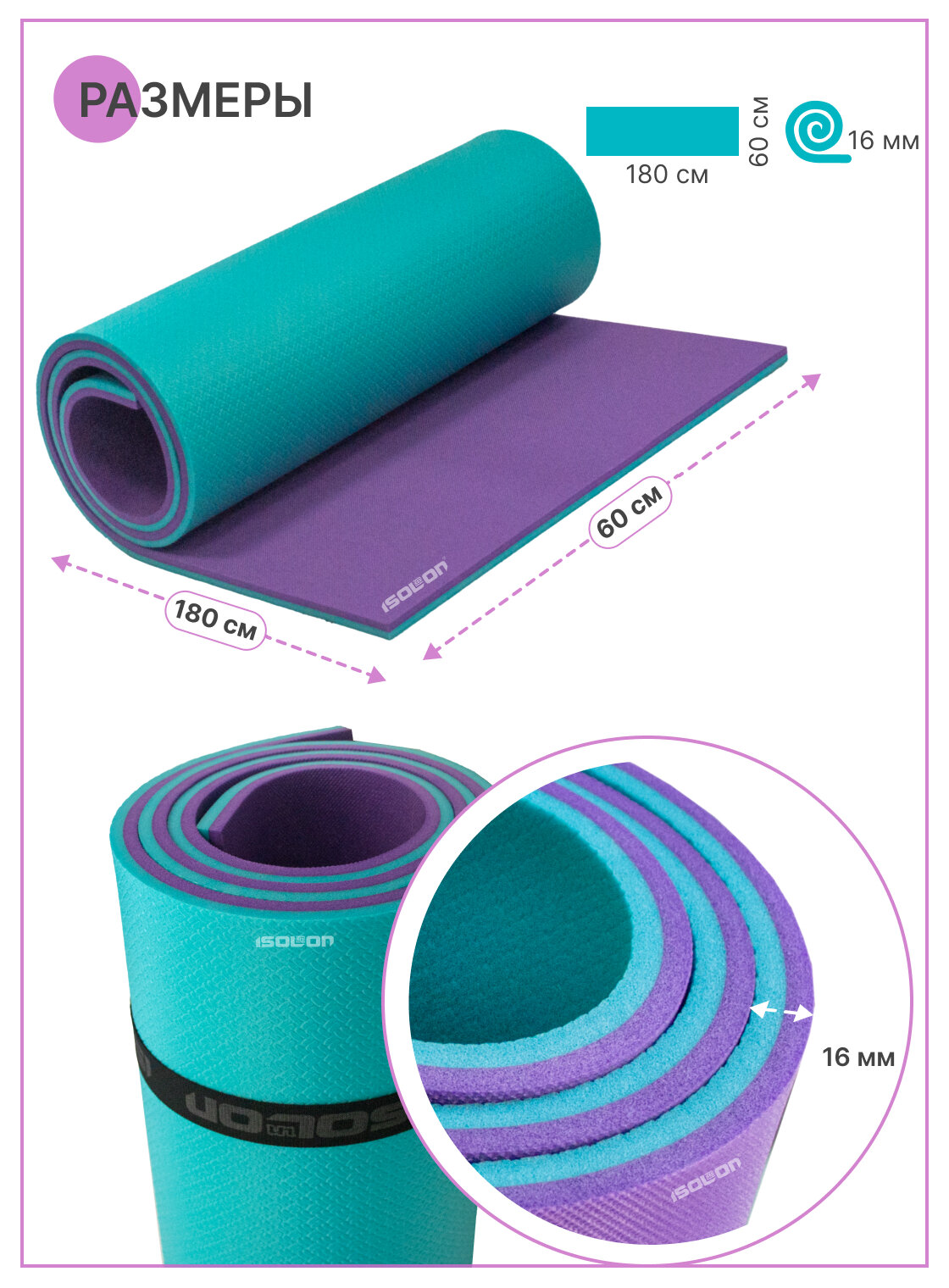 Коврик туристический для активного отдыха и спорта Isolon Camping 16 мм, 180х60 см бирюзовый/фиолетовый информация: