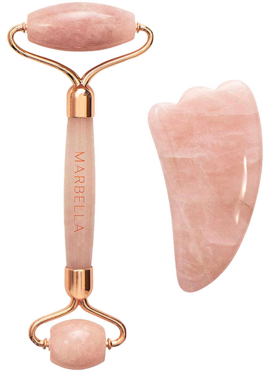 Набор: роллер-массажер для лица PREMIUM + скребок лапка из натурального розового кварца, MARBELLA информация: