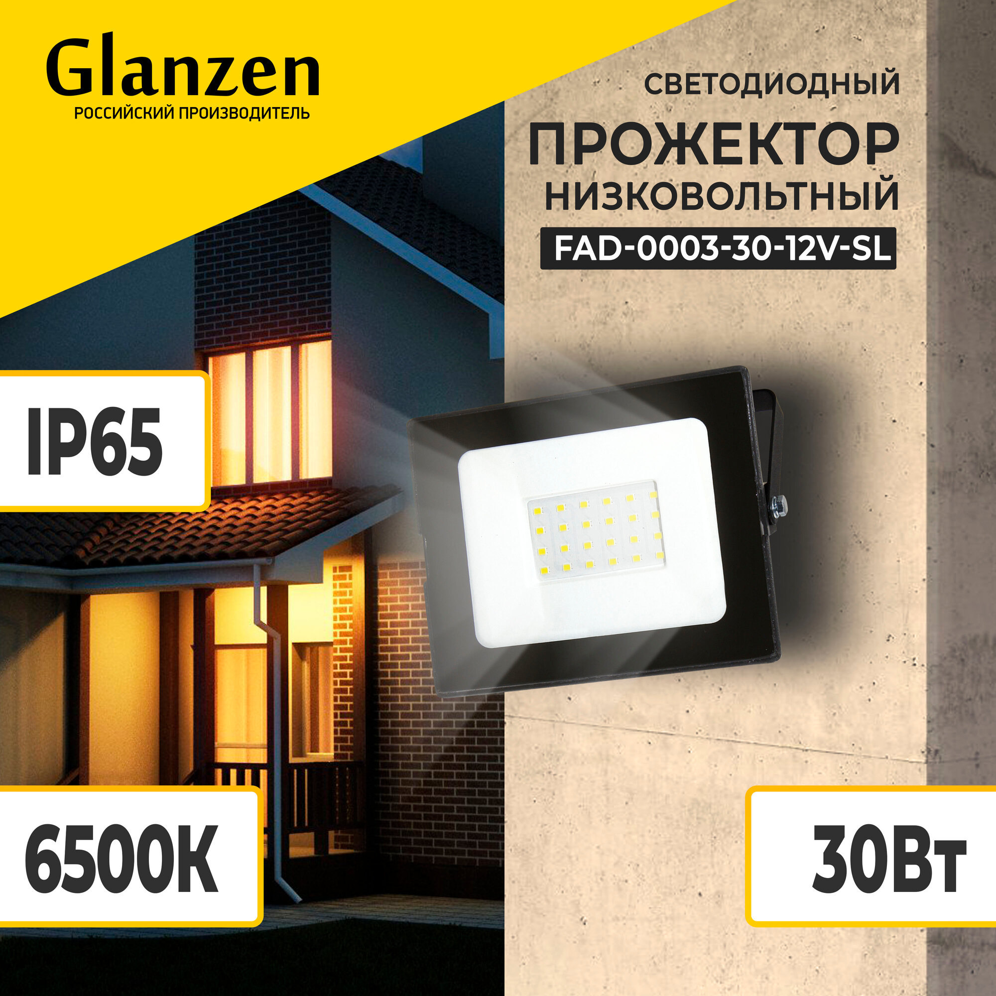10 цен на Светодиодный низковольтный прожектор GLANZEN FAD-0003-30-12V-SL 30W 12/85V IP65