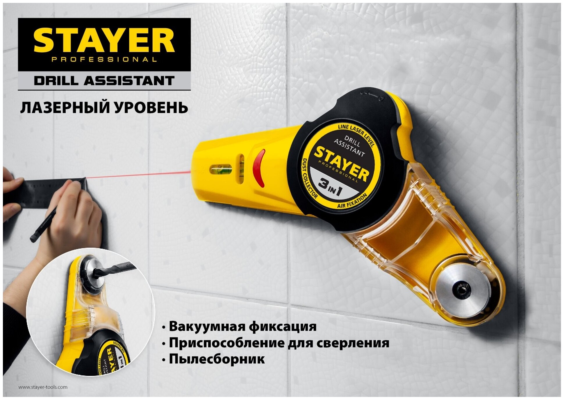 Уровень лазерный с приспособлением для сверления STAYER Drill Assistant, 34987