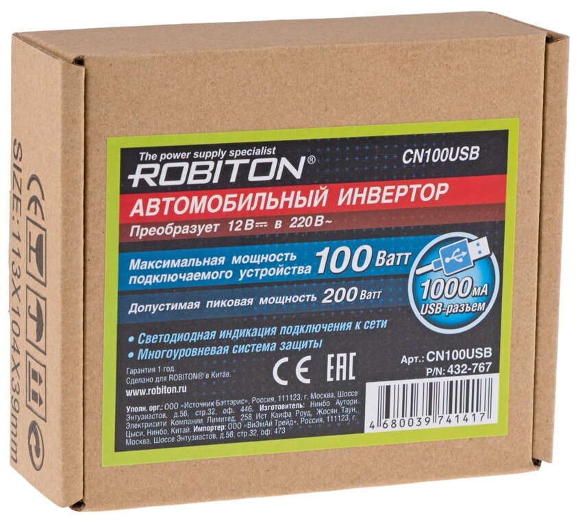 Инвертор ROBITON CN100USB, 100 Вт