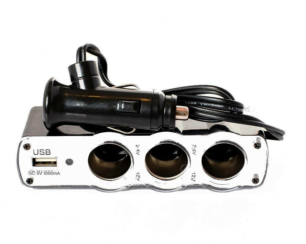 10 цен на Разветвитель прикуривателя A2DM "031", со светодиодной подсветкой, 3 выхода + USB, 12/24В