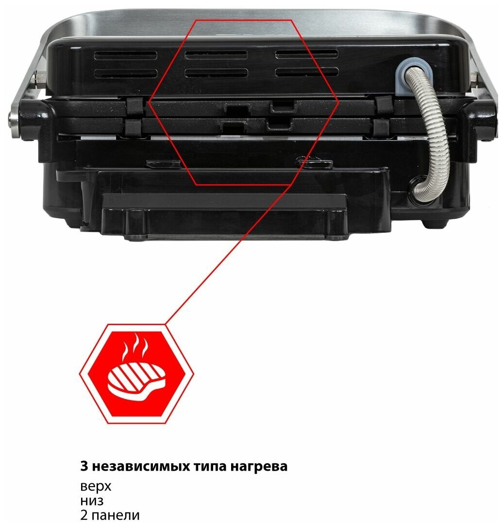 10 цен на Гриль электрический для дома JVC JK-GR302 со съемными антипригарными панелями 32 на 22см, 3 независимых типа нагрева; верх, низ, низ+верх, регулируемая температура и время, 2000 Вт