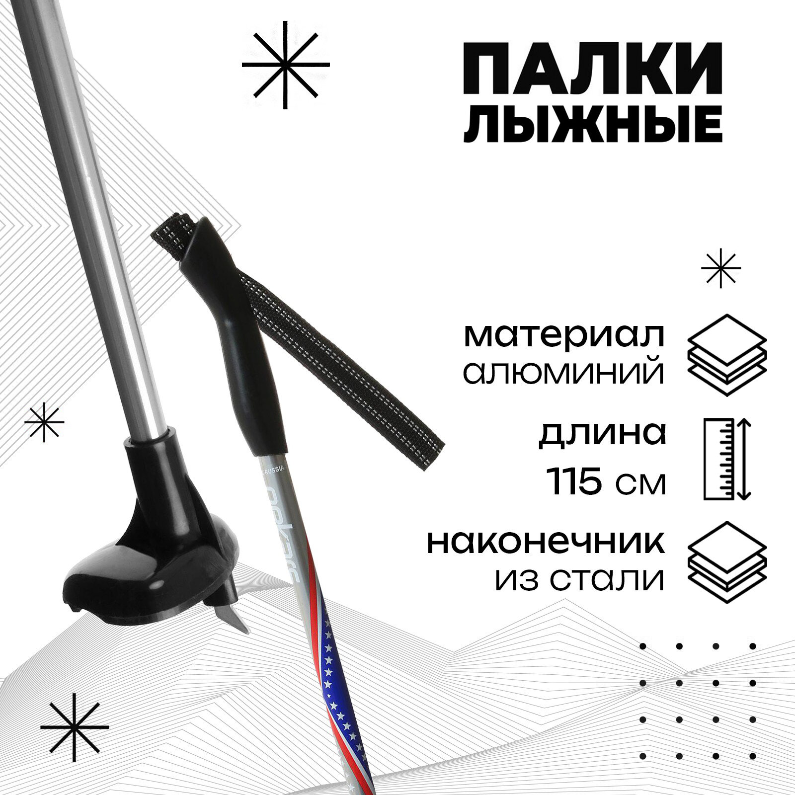 10 цен на Палки лыжные алюминиевые Gekars Vega, длина 115 см 1шт.
