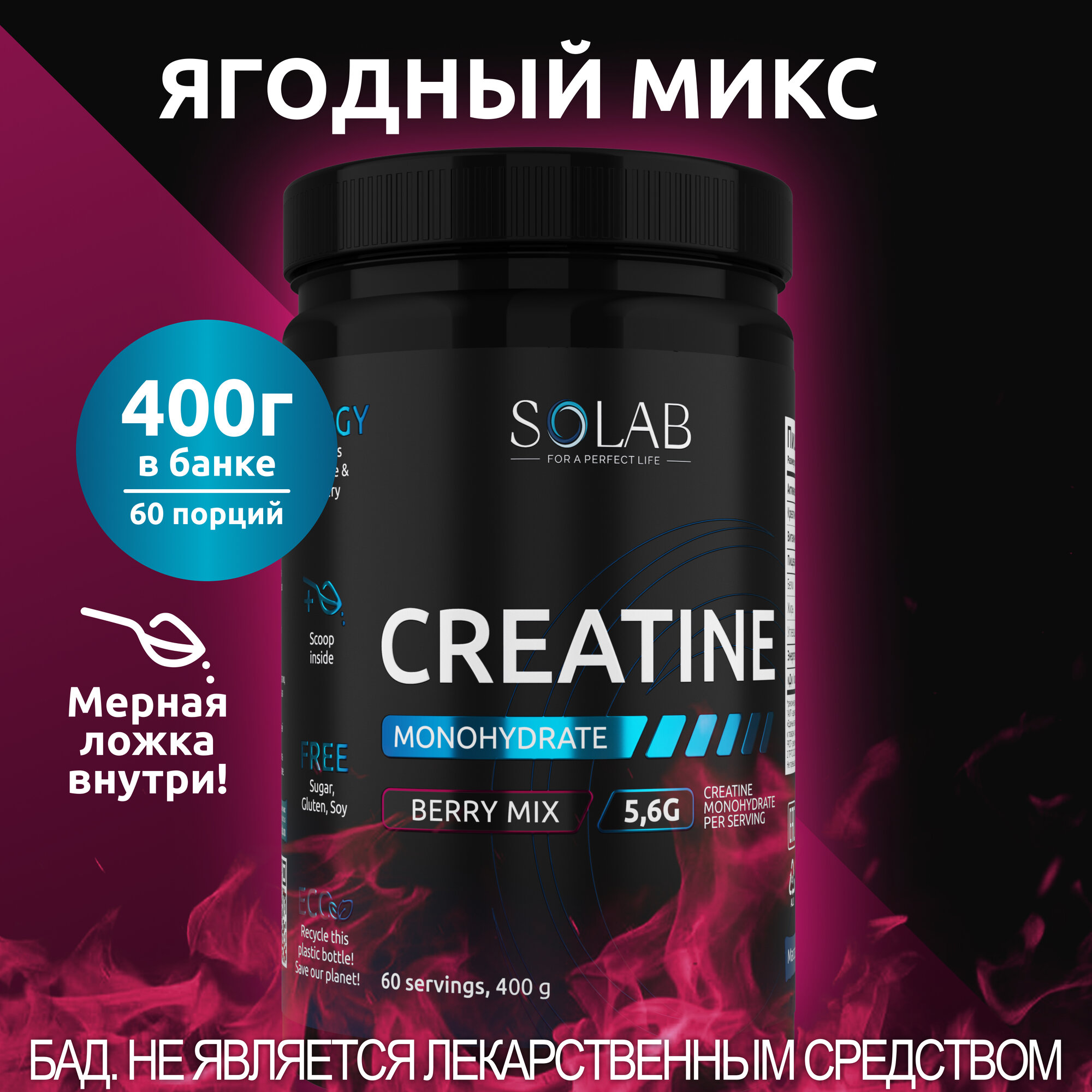 SOLAB Креатин моногидрат порошок 30 порций, Creatine Monohydrate, вкус лесные ягоды, 200 гр спортивное питание 696 ₽