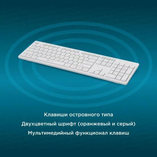 Клавиатура OKLICK 500M. белый, USB, slim, Multimedia, 1.5 м