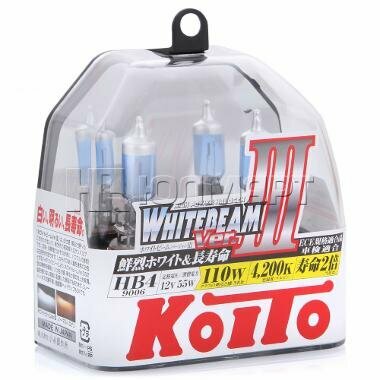 Лампа высокотемпературная Koito Whitebeam 9006 (HB4) 12V 55W (110W) 4200K, комплект 2 шт.
