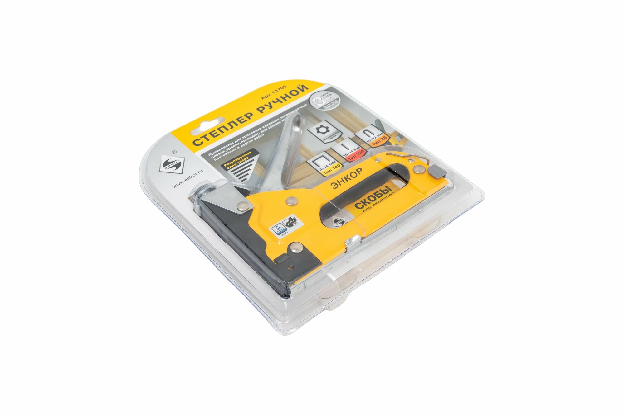 Степлер строительный NAGAN тип 53, скобы 4-14 мм металлический, регулировка удара, двухкомпонентная рукоятка