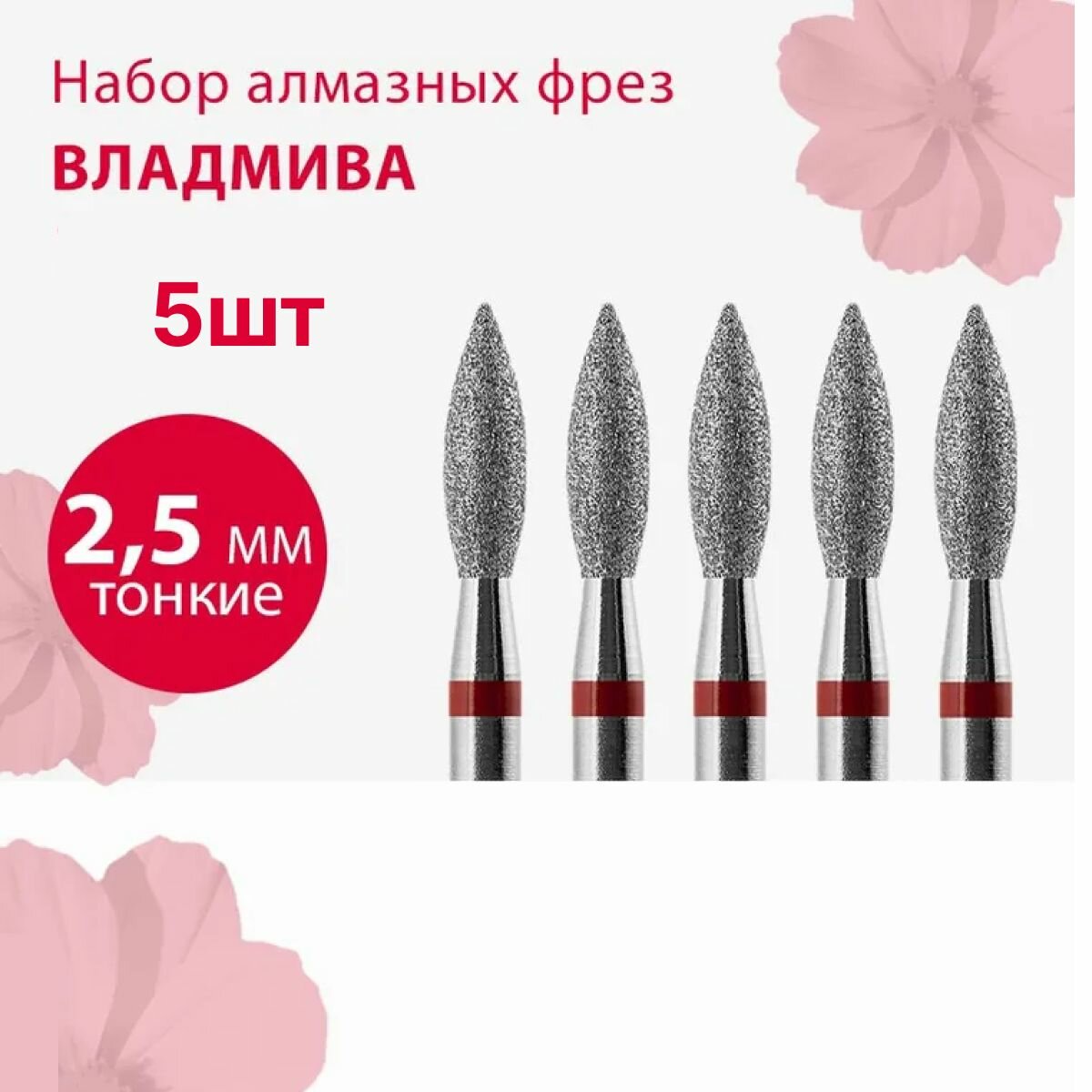 10 цен на Владмива Фреза алмазная для маникюра и педикюра, кутикулы, d-2.5, Тонкая (красная насечка), Пламя, (упаковка 10 шт), 806 104 243 514 025