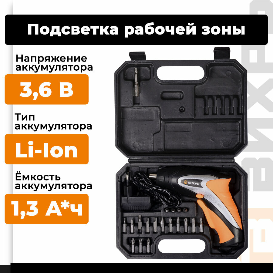 Отвертка аккумуляторная Вихрь ОА-36-ТФ