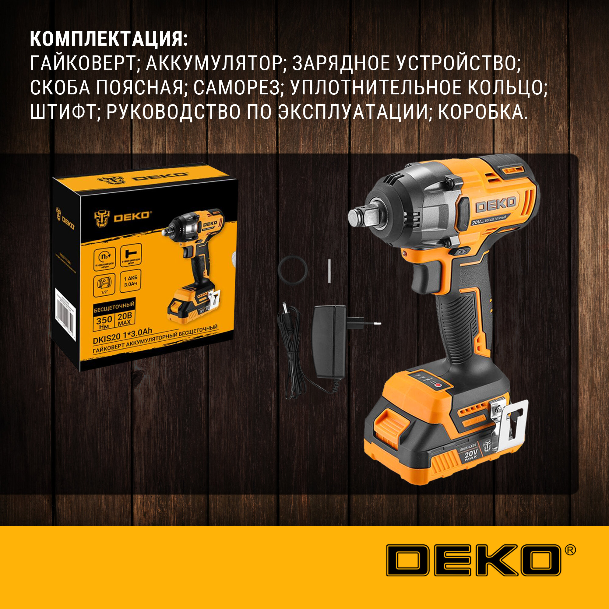 Гайковерт аккумуляторный бесщеточный DEKO DKIS20, 20В, 1*3.0Ач информация:
