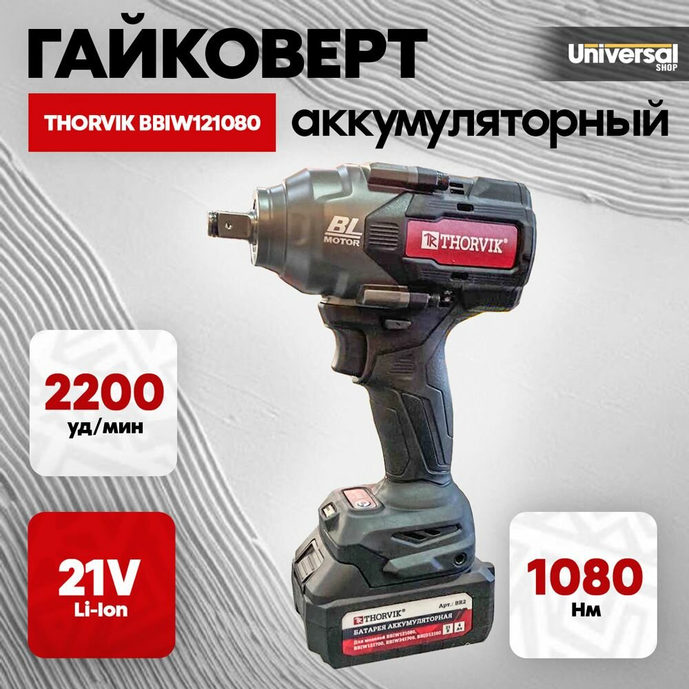 Отзывы на Гайковерт ударный аккумуляторный бесщёточный 1/2"DR, 21В, 1080 Нм THORVIK / арт. BBIW121080 - (1 шт)