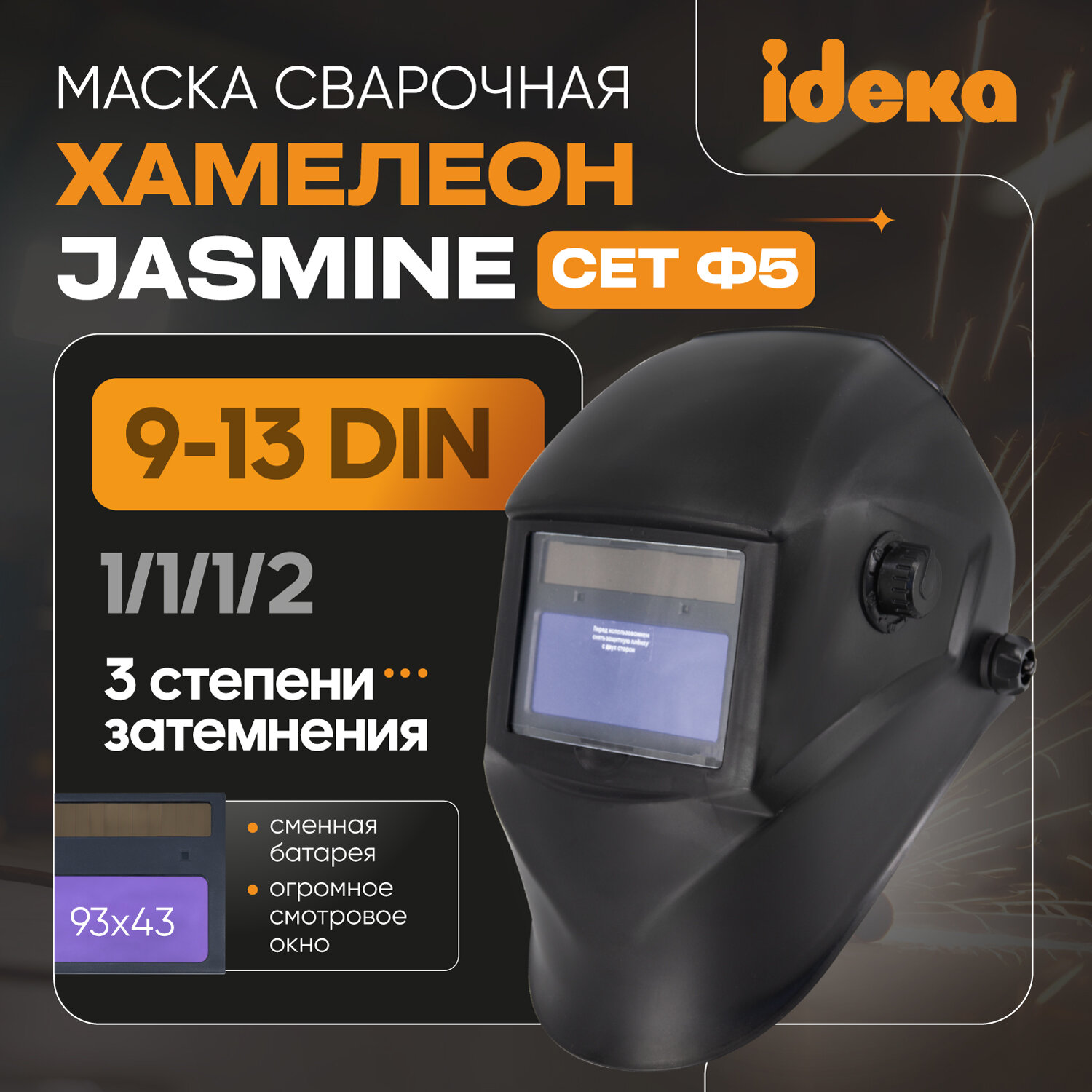 10 цен на Маска сварщика хамелеон / сварочная маска хамелеон CET Ф5 PRO Jasmine, 4/9-13 DIN, плавная регулировка, сменная батарея