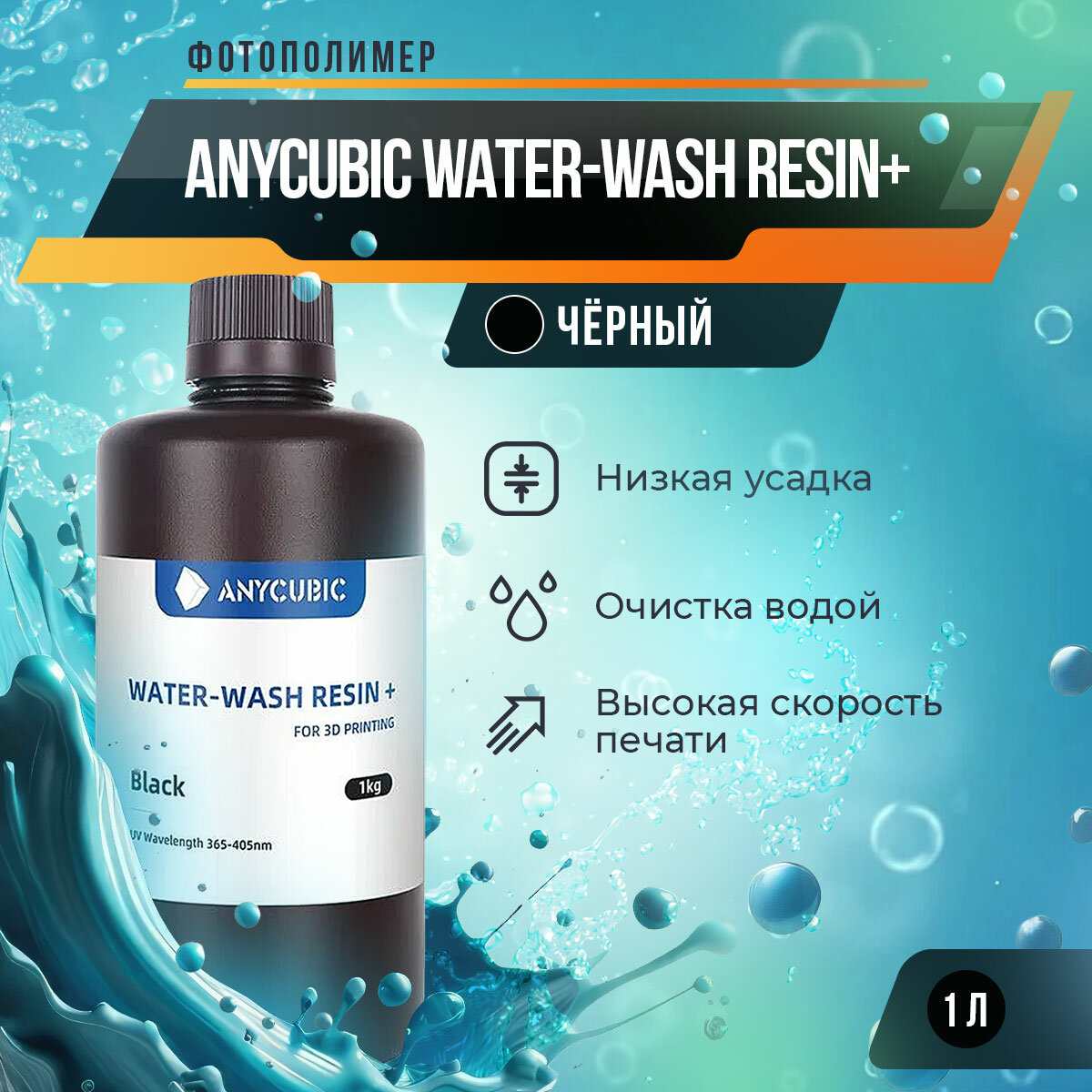 10 цен на Фотополимерная смола Anycubic Water-Wash Resin+ Чёрный, 1 л