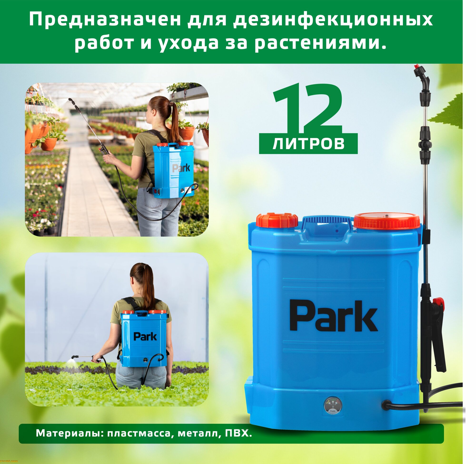 Опрыскиватель аккумуляторный ранцевый Park, 12л, арт. 006440