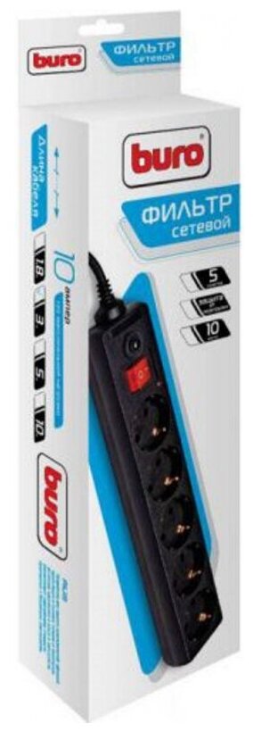 Сетевой фильтр Buro 3м (5 розеток) черный (коробка)