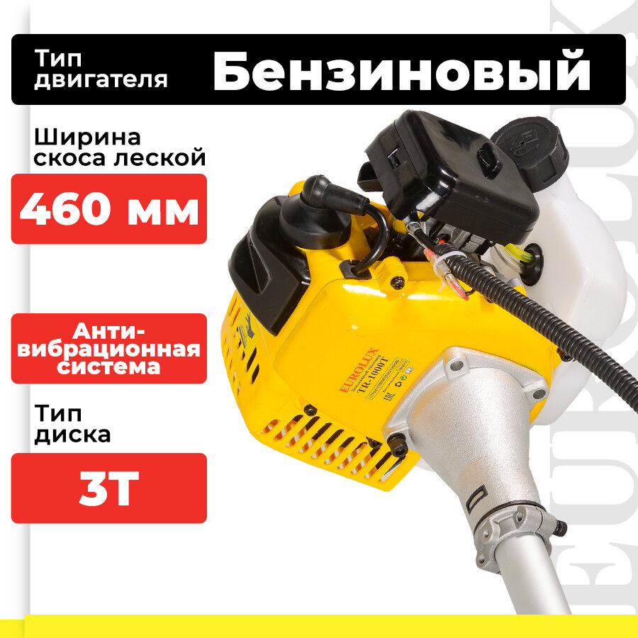 10 цен на Бензиновый триммер / мотокоса TR-1000T Eurolux (1300 Вт, 9500±500 об/мин, леска 460 мм, нож 255 мм, антивибрационная система)