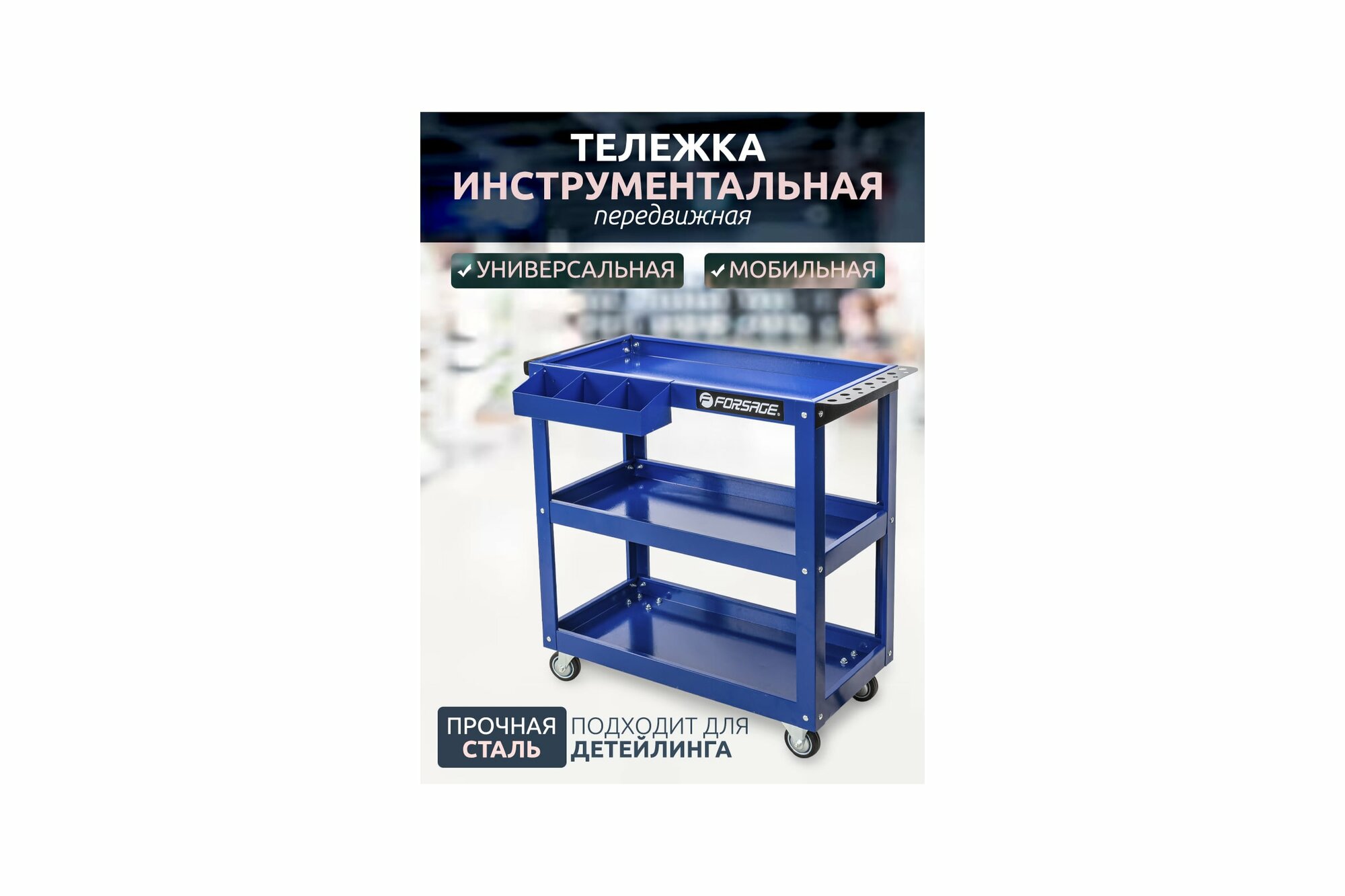 F-1141343A_тележка Инструментальная! 3 Полки, Навесной Лоток, Держ. Отверток (350Х770х820мм) FORSAGE арт. F-1141343A 9 585 ₽
