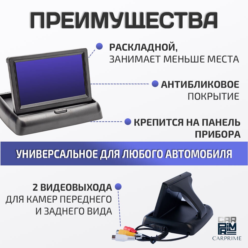 Дисплей-монитор 4.3 дюйма CarPrime откидной для камеры заднего вида информация: