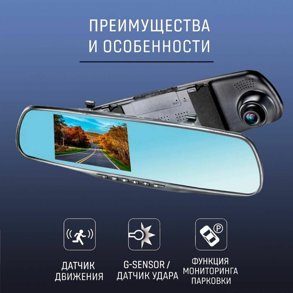 зеркало с видеорегистратором artway av-600,1920*1080p,120°,4,3’’ ,2 камеры
