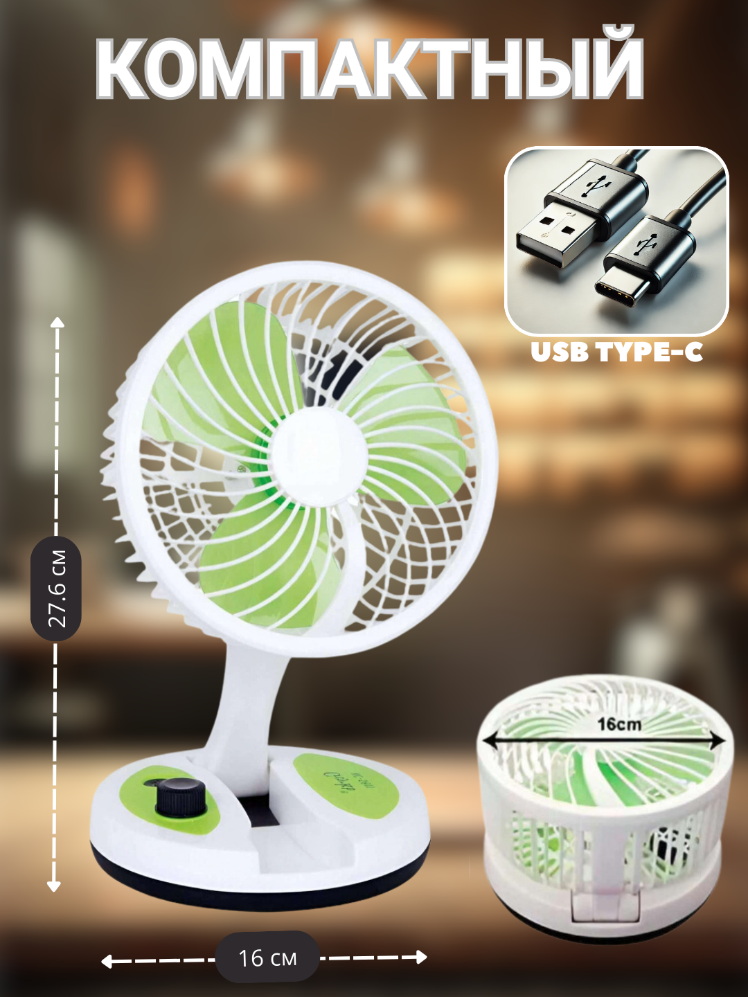 Вентилятор Power bank, складной, портативный, 5 скоростей работы, 3000 мАч, белый