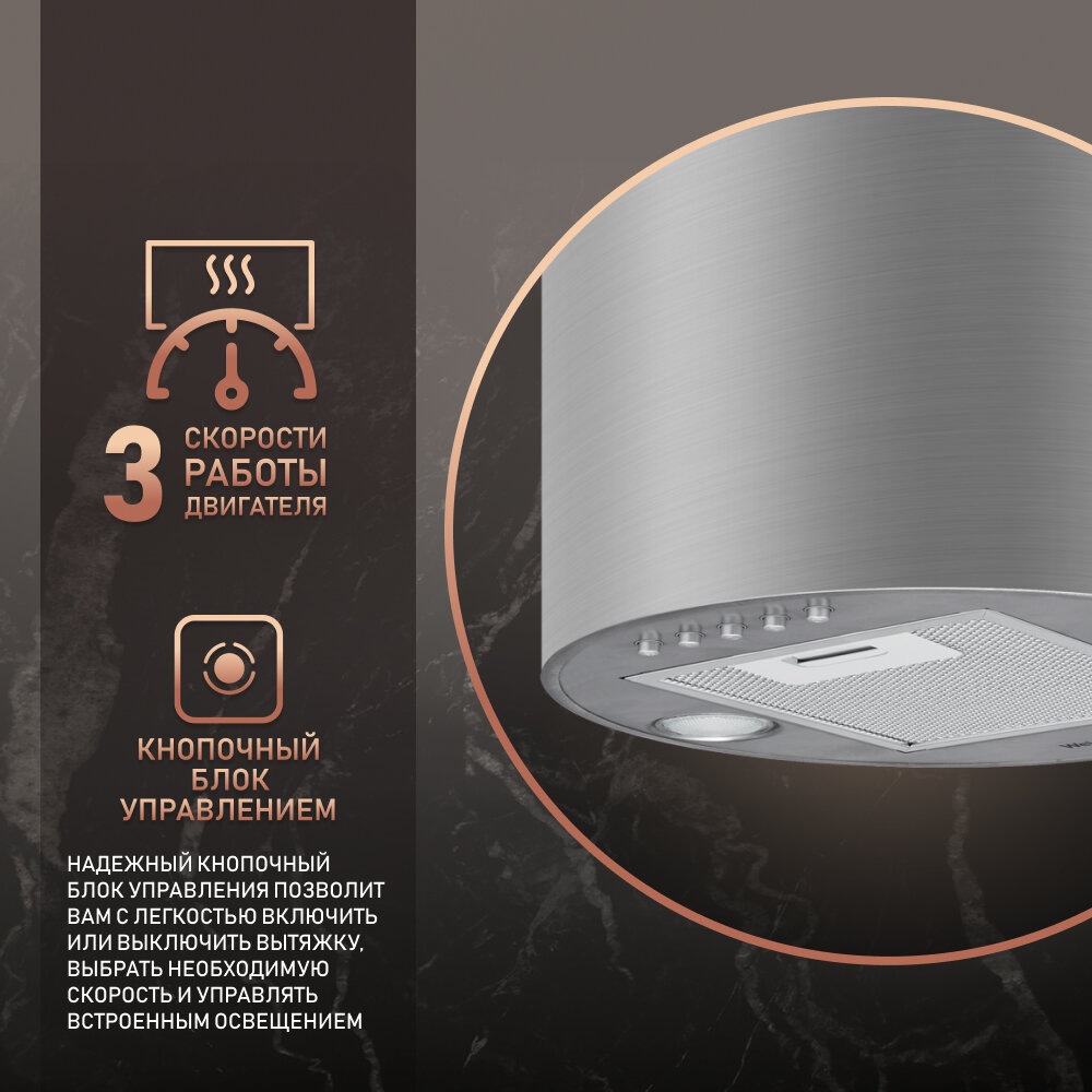 Вытяжка цилиндрическая пристенная Weissgauff Tubus 700 PB IX 3 года гарантии, Алюминиевый жировой фильтр, Низкий уровень шума информация: