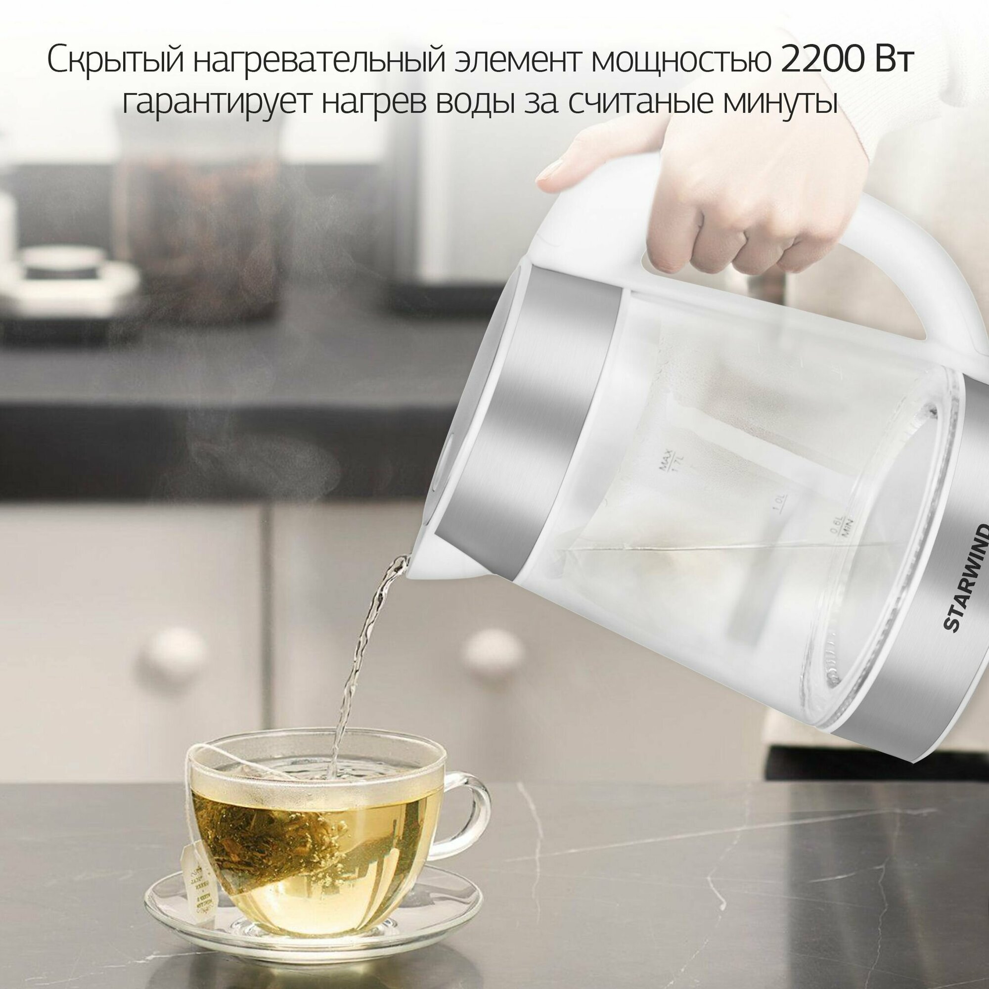 Чайник Starwind SKG2011 1.7л. 2200Вт белый/серебристый (стекло) информация: