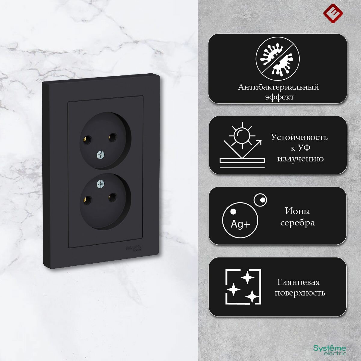 Розетка двойная карбон, без заземления,16А, в сборе, Schneider Electric AtlasDesign информация: