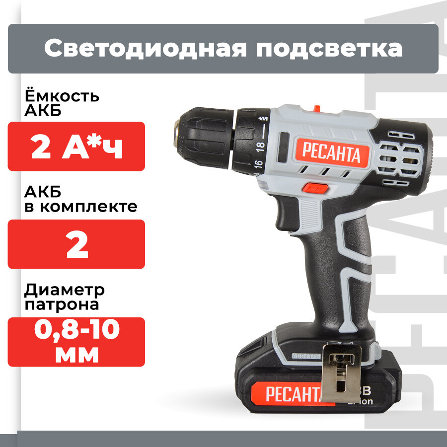 Дрель-шуруповерт аккумуляторная Ресанта ДА-50Л2-18А