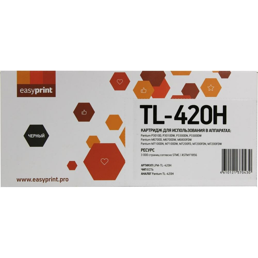 Картридж EasyPrint LPM-TL-420H, черный, 3000 страниц, совместимый для Pantum P3010/3300/M6700/6800/7100/7200/7300 информация: