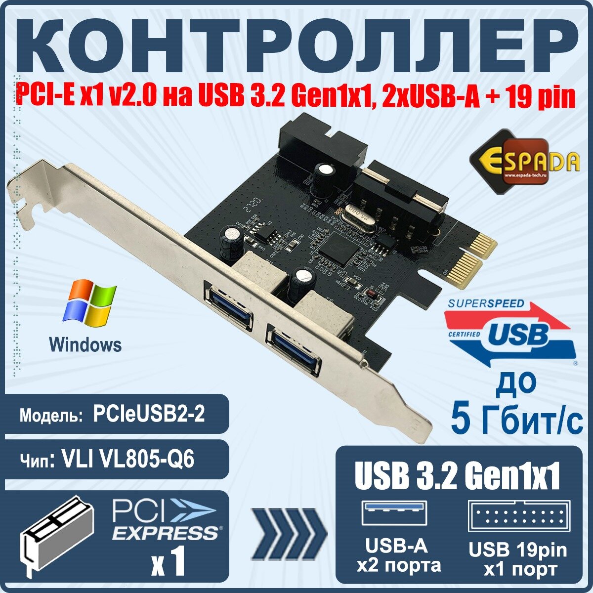 10 цен на Контроллеры и адаптеры Espada Pci-e USB 3.0 2+2 порта PCIeUSB2-2